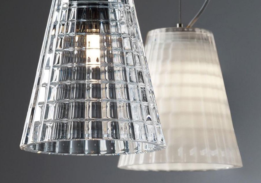 Специальная версия с плафонами от коллекции FLOW. Конусный рассеиватель из хрусталя (24% окиси свинца). Металлическое крепление из блестящего хрома. Регулируемая высота 20-210 см. Дизайн Pamio.